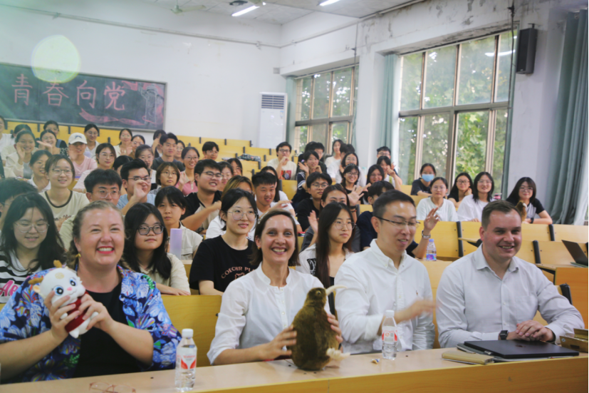 、外国语学院等近150名学生参加见面会。Clemency Montelle教授详细介绍了坎特伯雷大学数学与统计学院的办学历史、学生服务、支持政策等,还给同学们上了一堂生动有趣的数学课,她启发式的提问和对数学在生活中的应用的讲解,引起同学们极大兴趣,现场气氛活跃,互动频繁。