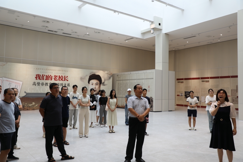 在教师博物馆馆长王瑾同志的亲自讲解下,与会师生通过图文和影像资料等载体,了解了学校首任校长高赞非先生的生平事迹,了解了高赞非从参与乡村建设运动,到投身抗日洪流,从建校之初的艰辛,到兴校之路的探索。