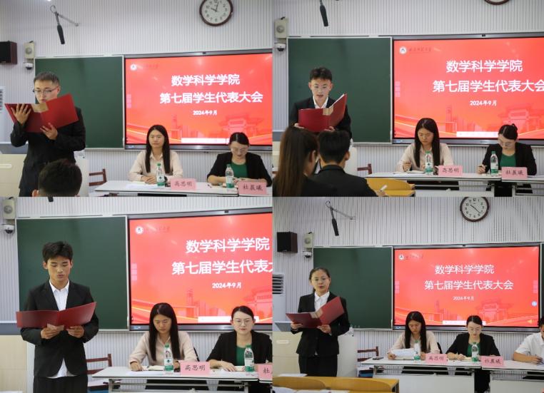 于数学楼401教室顺利开展第七届学生代表大会。学团工作负责人杜晨曦,辅导员高思明、吕瑞源及学生代表出席本次会议。