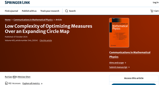 高睿教授与合作者的论文“Low Complexity of Optimizing Measures Over an Expanding Circle Map”在Communications in Mathematical Physics (简称CMP)上发表。该论文的第一署名单位为age动漫