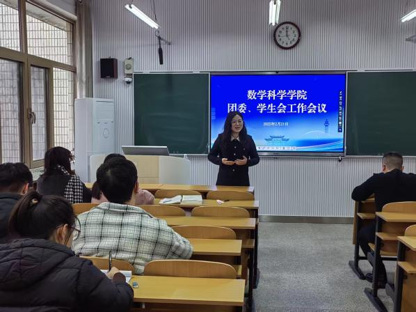 召开团委学生会新学期工作推进会。学团负责人杜晨曦强调,学生干部要立足服务本位,建立"班级-学生会-学院"三级联动机制,重点推行学业帮扶结对计划,打造"弯道超车"常态化服务平台;在素质提升方面,要求骨干成员带头参与科创赛事组织、社会实践项目策划,将服务过程转化为能力提升的实践课堂。辅导员吕瑞源指出,学生干部应注重平衡专业学习与工作实践,在活动统筹、团队协作中培养责任意识与担当精神。会议围绕第六届数学文化节、国家安全月系列活动、雷锋建设月、心理健康月、就业专场招聘会等筹备工作展开研讨,希望全体学生干部倾情参与,推动专业素养与综合素质双提升。