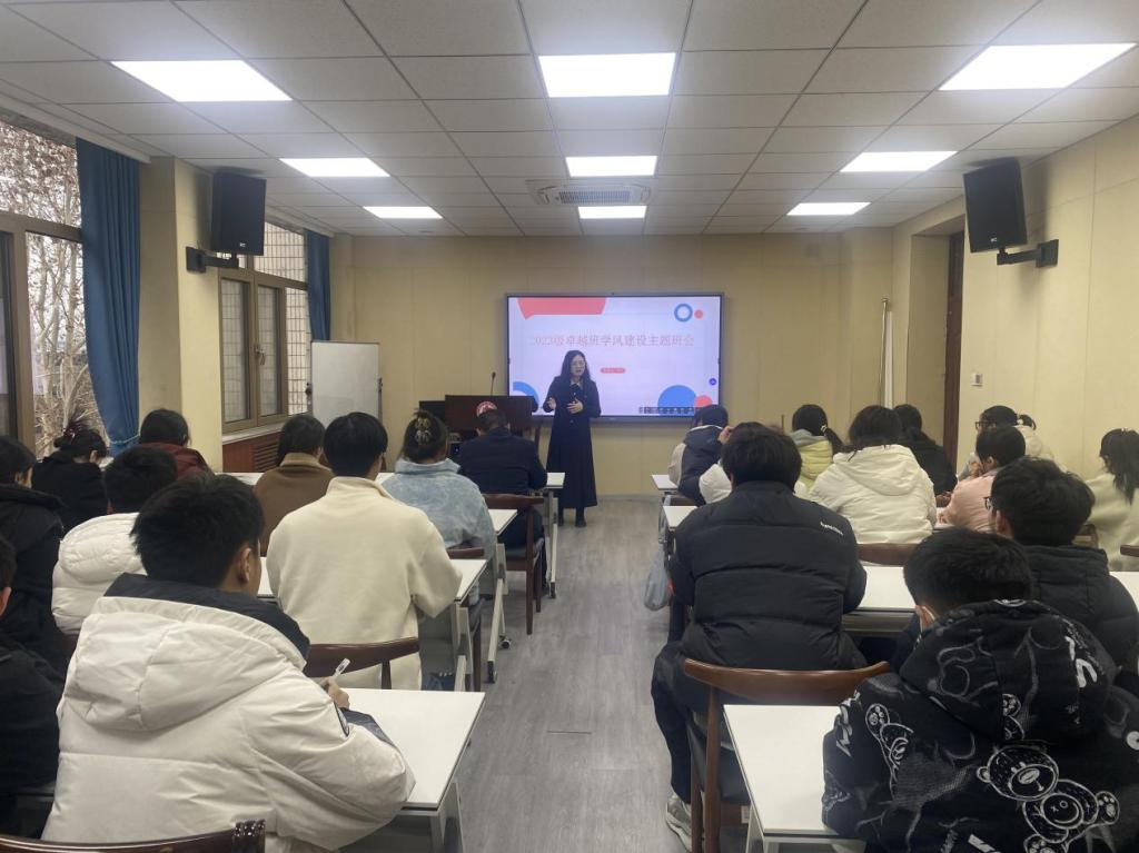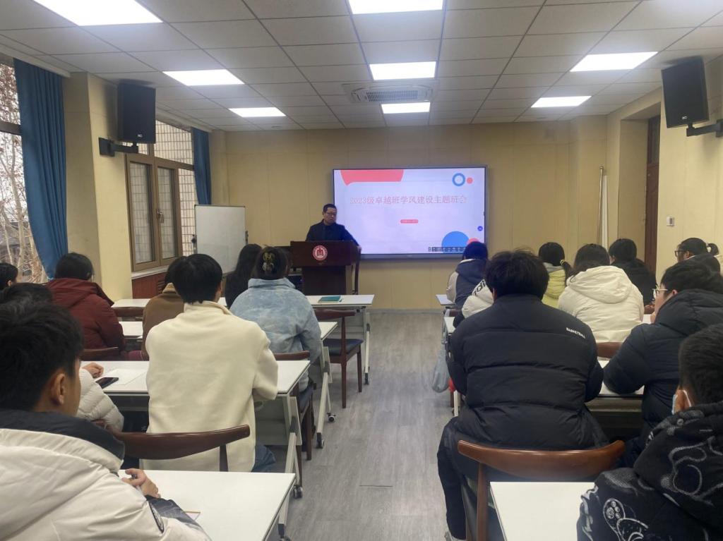 召开2023级杏坛学堂卓越班学业发展推进会。副院长许勇军阐释卓越人才培养逻辑,希望学生构建自主探究学习范式,借助"曲园数学角"培育数学直觉思维,根据个人实际情况和目标锚定发展坐标。学团负责人杜晨曦提出"卓越三阶跃迁"成长路线图,强调"卓越"应兼具学术锐度与创新厚度,要求学生积极参加本科生创新创业训练计划,启动"竞赛攀登工程",针对全国大学生数学建模、全国大学生数学竞赛等赛事开展靶向训练;并引导学生在追求卓越的同时要树立家国情怀,做德才兼备之人,发挥榜样力量。辅导员韦宁通过学业数据可视化呈现,引导学生制定个性化提升方案,希望在数学英才培养的"曲园赛道"上跑出加速度。