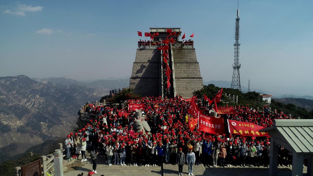 早上六点,同学们在西南门统一乘车出发前往红色教育实践基地——蒙山。春光灿烂,百花盛开,伴着山林中婉转的鸟鸣与同学们的欢歌笑语,劳累却充满教育意义的蒙山之旅开始了。旅途中,大家相互搀扶,相互帮助,相互鼓励,充分发扬了团结拼搏、不畏艰险的优良作风,再苦再累也不喊停,再酸再痛也绝不放松。同学们漫步悬崖栈道,参观七二〇电视转播台旧址,登顶蒙山后,同学们志气高昂,与其他学院同学一起,完成了快闪视频《我和我的祖国》的拍摄。