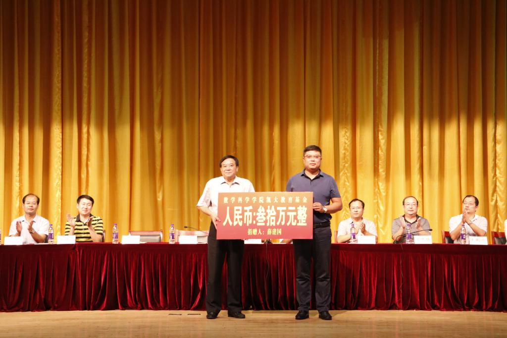 薛建国先生在发言中谈到,自己从曲师数学院毕业后一直心系曲园,时刻不忘自己是曲园人、数学人,感谢母校老师们的谆谆教导,表示将继续关注母校,发扬饮水思源的精神,为曲阜师大的发展贡献更大的力量。