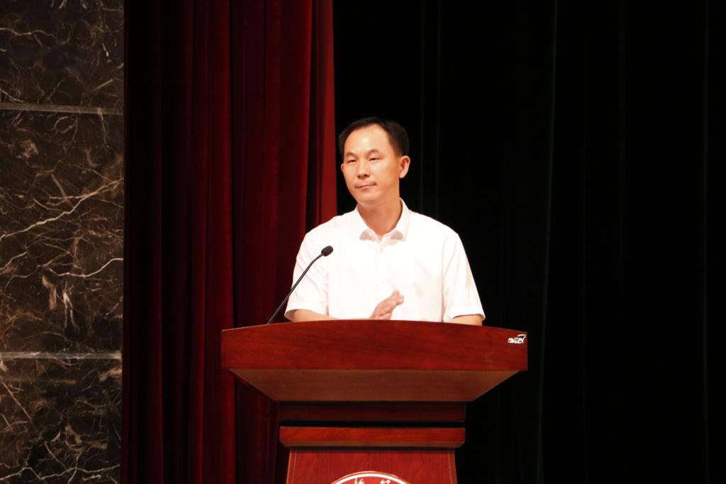 2018级新生表示热烈欢迎,对设立凯大教育基金的薛建国校友表示感谢。他以《礼记·大学》中“大学之道,在明明德,在亲民,在止于至善”开场,为学生讲解大学之道,进行“大学第一课”的教育。希望新生们以道德为内心源点,以自我求新为努力过程,以宏伟正义、坚定价值理念为理想目标,将学习与做人相结合,在大学中学习、追求“君子之道”,告诫同学们在面对挫折时要学会反思、学会坚守,在反思中成长,在坚守中成才,成为曲园中乐学笃行的“犁牛之子”。