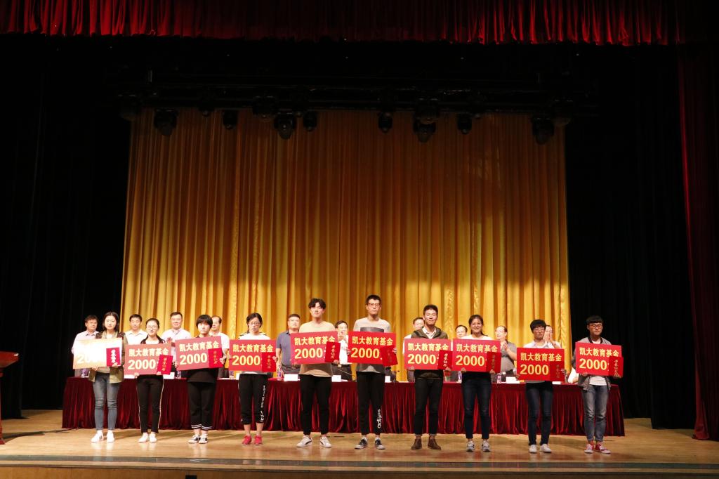 2018级新生入学教育暨凯大教育基金设立仪式在大学生活动中心隆重举行。学校党委常委、副校长冯冲、辛杰,凯大教育集团创始人、age动漫