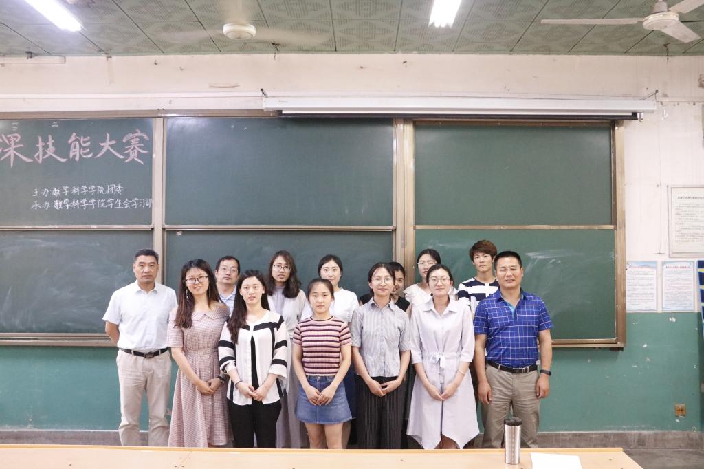 团委主办的授课技能大赛在数学楼201教室成功举办,王利广副院长,李本星老师,冯振举老师以及参加省授课技能大赛并取得优秀成绩的获奖学生吕皓银、王倩倩出席了本次比赛并担任评委。