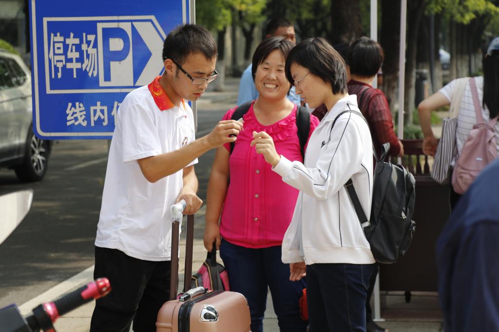 报到处的党员先锋队负责迎接报道的新生,在帮助新生完成报道手续后。他们便微笑着迎上前去,接过家长手中沉重的行李,引领新生前往宿舍。引导途中,他们更是耐心详细地向新生和家长们介绍学校的优良环境和悠久历史。此外,新生咨询服务处的志愿者们耐心回答问题,为广大新生和家长答疑解惑,形成了有问必答,热情服务的良好氛围。为避免有些新生夜间到校,age动漫