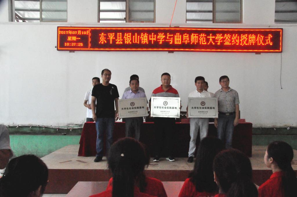 社会实践基地揭牌仪式暨大学生“三下乡”活动在东平县银山中学拉开帷幕,数学与统计学院党委副书记王作茂,团委书记刘永礼等辅导员,东平县政府教育部门和银山镇中学相关负责人出席,银山镇中学全体师生和部分学生家长参加了此次活动。