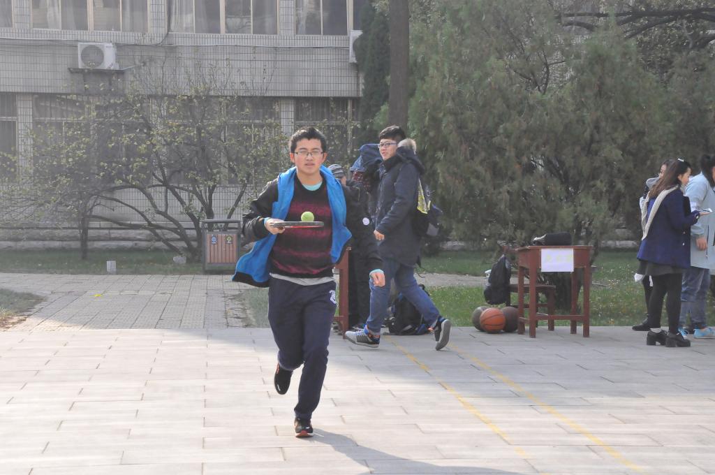 本次吉尼斯竞技记录赛囊括了袋鼠跳、踢羽毛球、齐心协力、投筷子、球拍端球跑、筷子夹玻璃球、自行车慢骑、颠球、跳绳、转呼啦圈、钥匙开锁、瞎子过桥、驿站密码、最强大脑、九九数独、我来找茬等20个项目,生动有趣、种类繁多。比赛形式为现场报名,每项活动都吸引了大批同学参观和参赛。跳绳比赛中选手们身轻如燕,弹跳有力,绳舞飞扬幻化成一道道亮丽的曲线。接下来的踢羽毛球比赛更是将现场气氛推向新的高潮,各位参赛选手动作娴熟,快而不乱,现场的呐喊声此起彼伏,好不热闹。