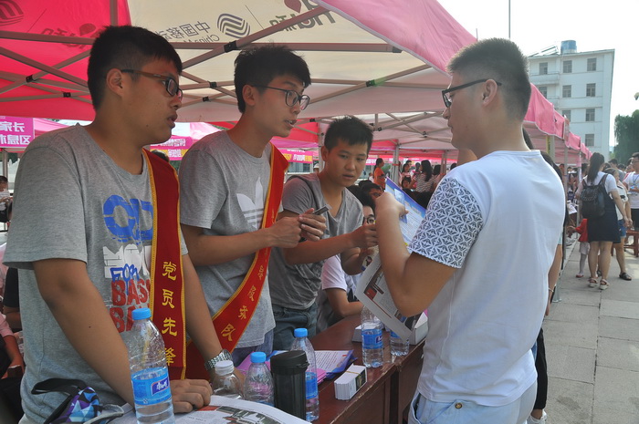 报道处依旧设立了党员先锋队,早上七点,志愿者们便早早的到达报道处接受工作安排,耐心等待。新生办完报道手续,他们便微笑着迎上去,从家长手中接过沉重的行李,仿佛接下了照顾师弟师妹的重任。校园里,他们更是耐心详细地向新生和家长们介绍学校的优良环境和悠久历史。人头攒动,秩序井然,一张张热情的笑脸,一句句亲切的问候,一项项贴心的服务,得到了新生和家长的一致好评。