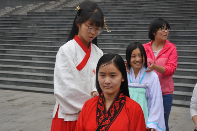 活动伊始,身姿曼妙的女子于木铎金声中起舞,在芝兰玉树中跃动,流转的音符和飞扬的裙裾仿佛让大家身临其境,领略了古代礼仪之美。开场舞结束后,身着汉服的少女以走秀的形式进行古代礼仪的展示与讲解。在现场互动环节中,工作人员进行现场教学古代发髻的梳法与中国结等手工制品的制作,吸引了很多观众。蒙蒙细雨中,古风古韵在一双双手间流转,豆蔻芳,桃李美,尽绽放。