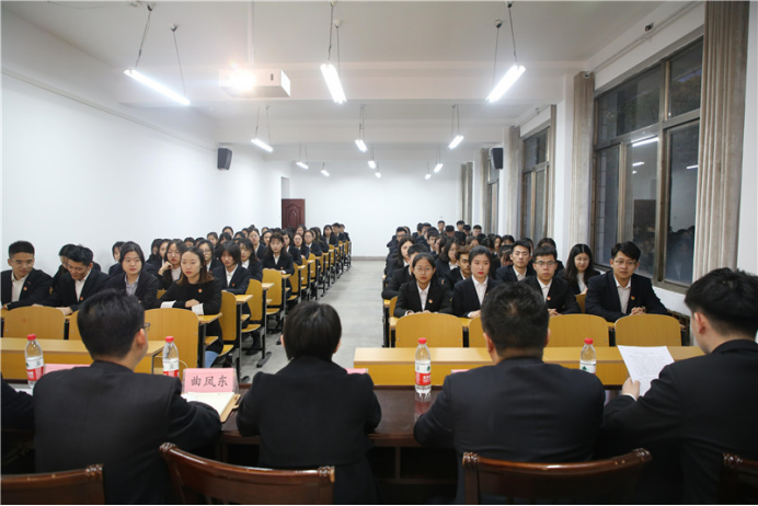 第二届团员代表大会暨第二届学生代表大会第一次全体会议在数学楼401教室举行。学院党委副书记曲凤东,团委书记朱伟卫,辅导员杜晨曦、徐腾飞出席会议。2017级和2018级全体团员代表及学生代表以及2018届、2019届学生会主席团成员参加本次会议。会议由团委书记朱伟卫主持。