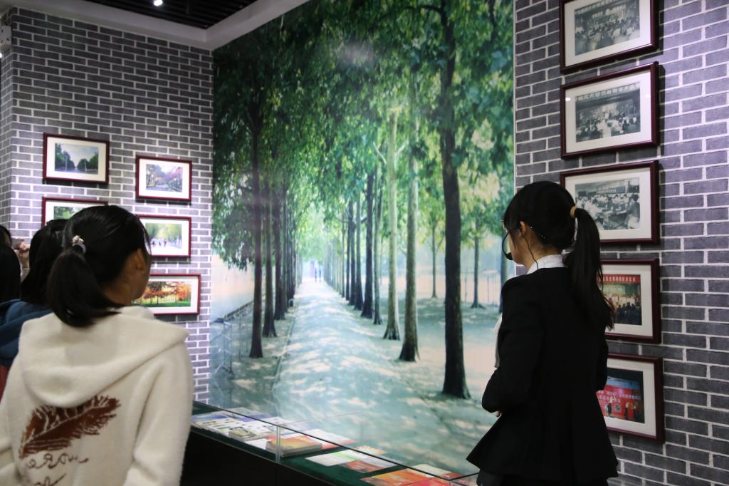 同学们随后来到三楼的校史馆内,讲解员从东、西两个展厅分别就学校诞生背景、办学历史、教学研究、人才培养、学术成就、知名校友及学校未来发展进行了详细讲解。沿着历史长廊,讲解员仔细地梳理了我校曲折前行的历史脉络。校史馆以图文并茂的信息和实物,展示了学校各个方面建设的精神风貌和杰出成就,对学校人文、地理、教学、科研及对外交流等方面都有详细的阐释,展现了我校各个时期的办学成果,以及各种名人事迹。大家时而聚集在讲解员身边聆听讲解,时而分散开仔细了解自己感兴趣的史料。