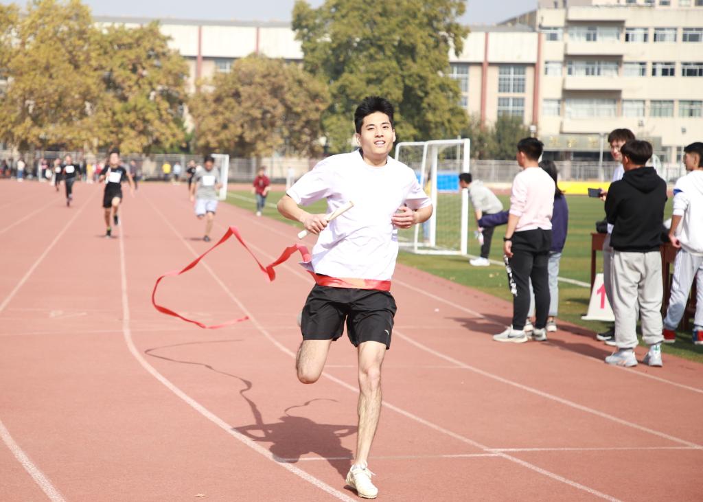 运动会开始之前,曲凤东上台致辞。他引用习近平总书记强调的“少年强、青年强则中国强”,希望全体同学肩负重任,发扬体育精神,自强不息,砥砺奋斗,在实现中华民族伟大复兴中国梦的新征程上奋勇拼搏。伴随开场舞的完美落幕,徐腾飞鸣响第一枪,宣布运动会正式开始。