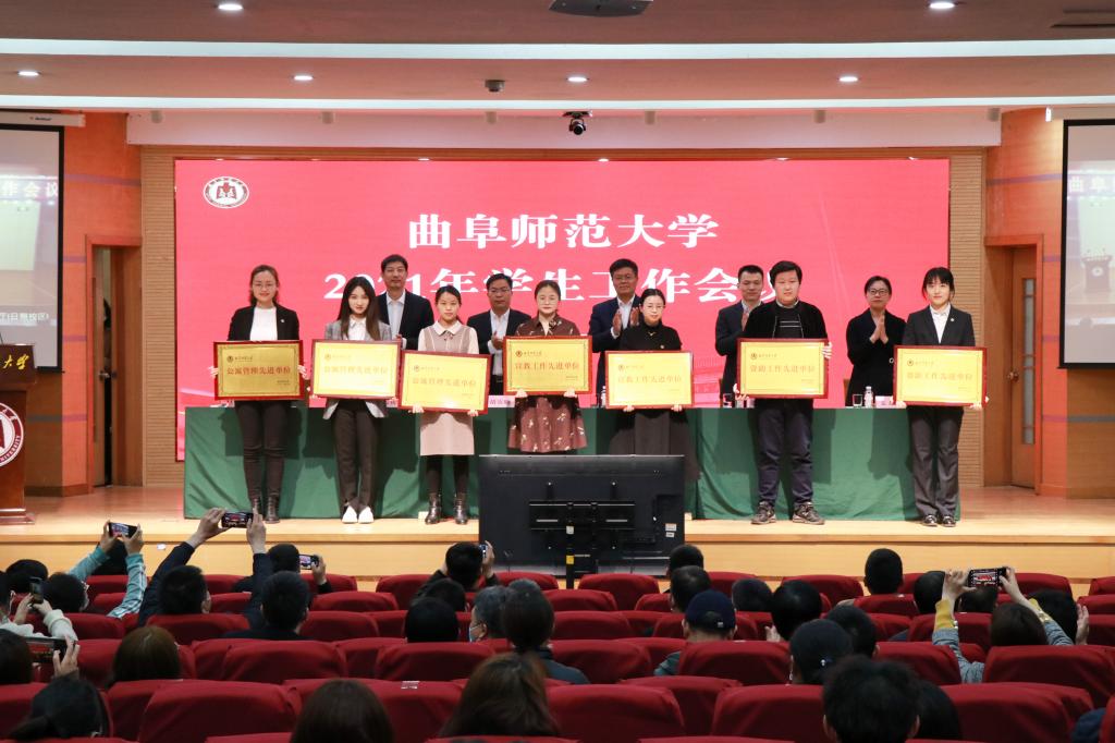 于曲阜校区孔子会堂及日照校区图书馆报告厅召开2021年学生工作会议。会上,age动漫