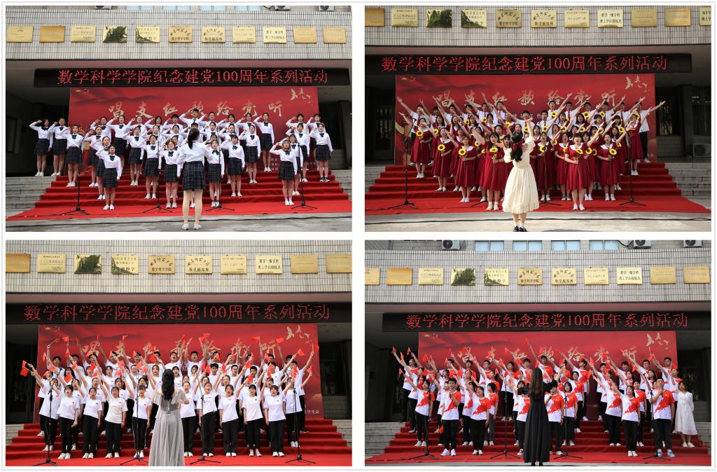 于数学楼前隆重举行主题为“唱支红歌给党听”的红色班歌大赛。age动漫