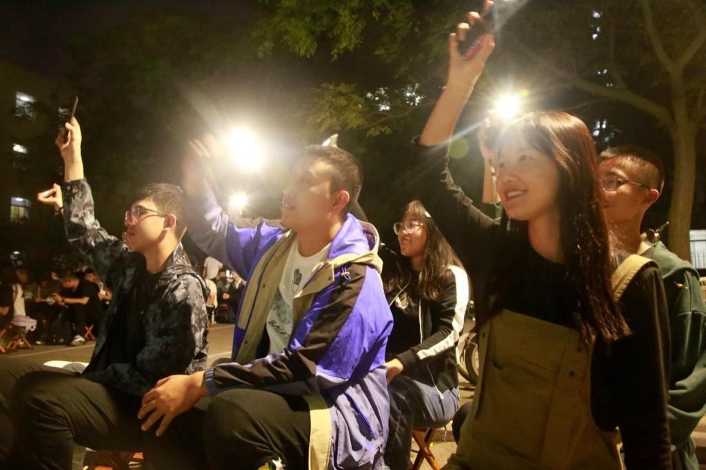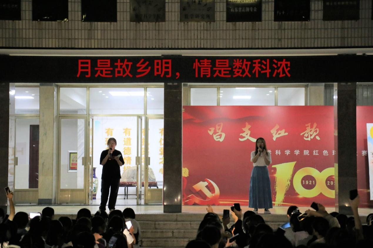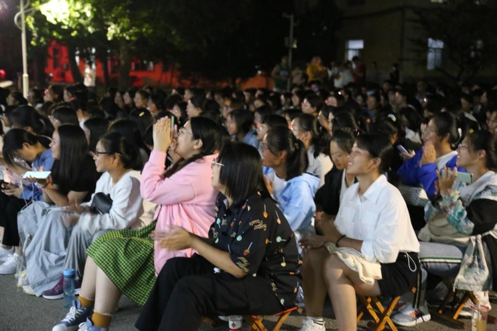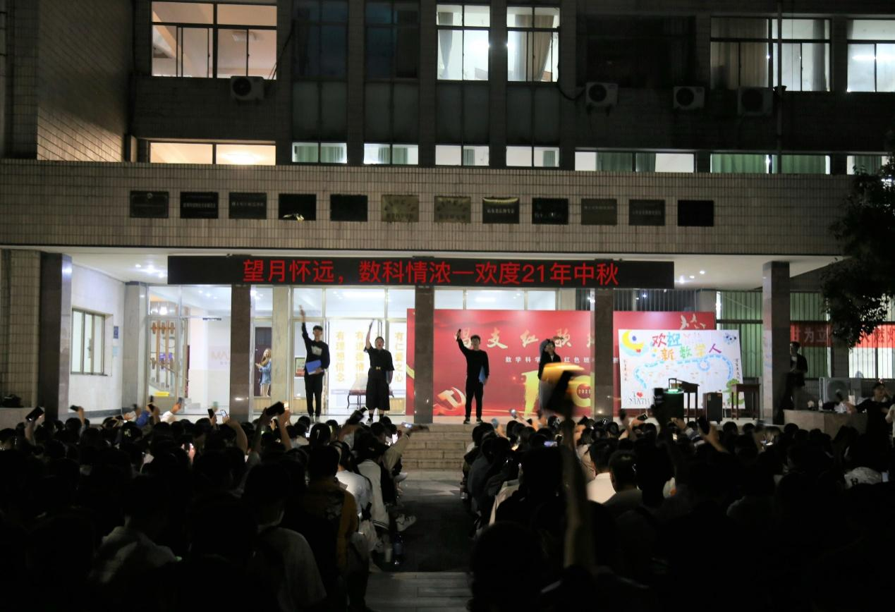系楼前广场,师生齐聚一堂,共赏人间月圆。