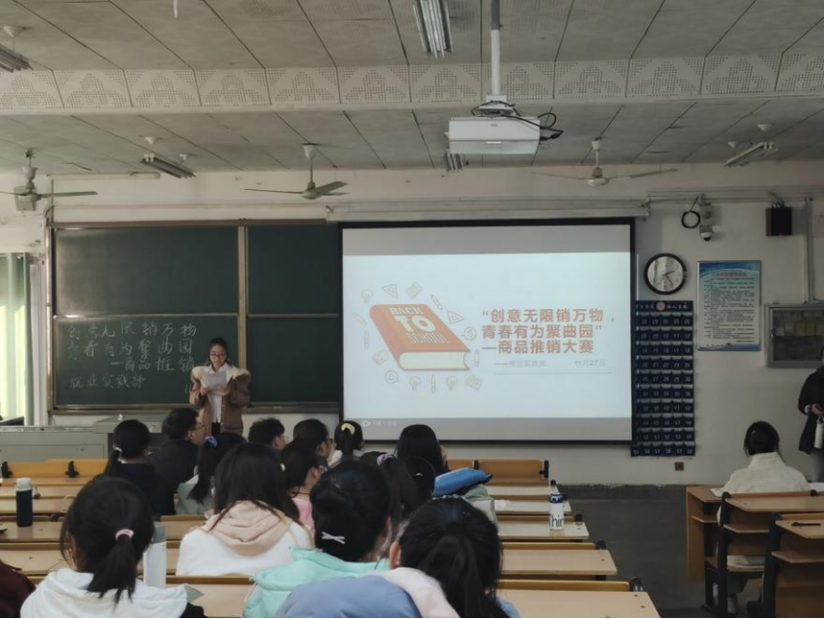 就业实践部承办的“创意无限销万物,青春有为聚曲园”商品推销大赛于数学楼201室顺利举办。