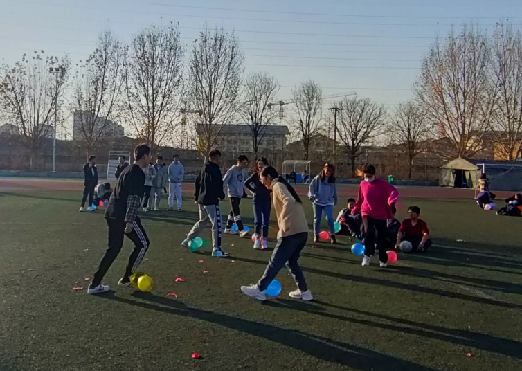 活动分为个人挑战赛和团体默契赛,个人挑战赛为“踩气球”,团体默契赛为“你划我猜”。赛前,参赛队员们志气昂扬,积极做好热身准备。个人挑战赛开始,双方迅速进入状态,投入激烈的比赛,队员们情绪高涨,现场气氛十分活跃。团体赛默契赛中各队队员积极配合,充分发挥想象力,准确地猜出所给词语。整个游戏期间同学们之间展现出来的团结一致、沟通交流、勇于承担责任的优秀风气正是游戏的目的所在。