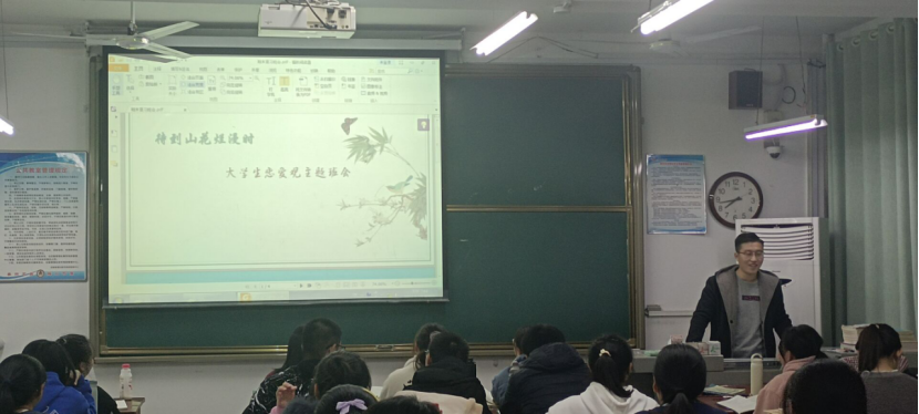 辅导员从爱情的含义、如何树立正确的恋爱观、如何正确处理恋爱双方之间的关系、如何正确处理恋爱过程中双方的矛盾、如何正确处理恋爱与学业之间的关系、如何应对失恋等方面进行指导,使同学们进一步加深对恋爱的认识。紧接着,辅导员就如何遵守“大学生恋爱观”做出总结并给同学们提出几点要求:一是要树立正确的恋爱观,文明相亲相爱;二是要尊重人格平等,自愿互尊互爱;三是要坦诚相待,自觉承担责任;四是要正确处理好恋爱双方之间的关系和恋爱与学业之间的关系;五是要理性看待失恋;同时,辅导员还希望同学们在恋爱中要避免以下误区:一是不能误把友谊当爱情;二是不能错置爱情的地位,奉行爱情至上主义;三是不能片面或功利化地对待恋爱;四是不能只重过程不顾后果;五是不能因失恋而迷失人生方向。