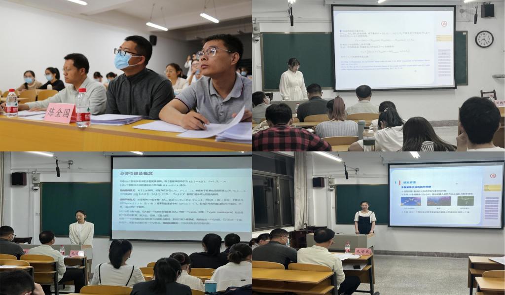 数学院共17位研究生报名了本次论坛,准备充分,对自己的研究成果做了精彩的汇报。报告人以PPT的形式围绕研究背景、研究方法、结果及其证明展开论述和汇报。各位评委专家认真听取了同学们的汇报,并就报告中的研究内容、逻辑、创新点等提出了指导意见,并按照评分细则客观公正地进行评分。台下的研究生也认真聆听,并做了笔记。