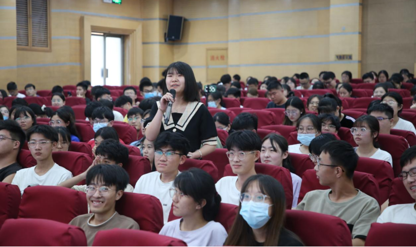 在自由提问环节,同学们发言踊跃,会场气氛活跃,笑声不断。
