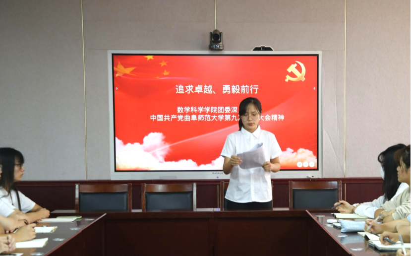 第九次代表大会精神。数学科学学院团委、学生会、各年级团支书和班长参加集体学习,会议由学院团委副书记徐腾飞主持,学院党委副书记曲凤东出席会议。