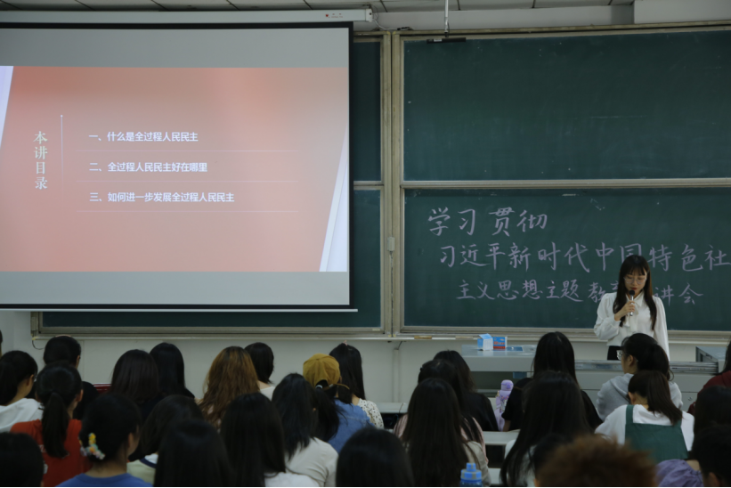 最后,李慧以“解码中国式现代化”为主题,介绍了中国式现代化的发展沿革、理论内涵和本质要求,阐述了中国式现代化是一项伟大而艰巨的事业,号召同学们要坚持把国家和民族发展放在自己力量的基点上、把中国发展进步的命运牢牢掌握在自己手中,沿着自己选择的正确道路昂首阔步走下去,谱写新时代中国特色社会主义更加绚丽的华章。