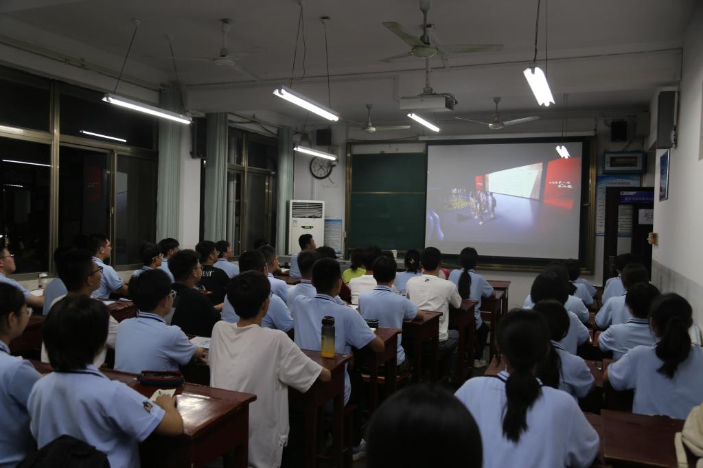 组织正在军训期间的2023级新生们在各班教室观看爱国主义教育和国防教育宣传片,以此激发新生们的爱国情怀和国防意识。