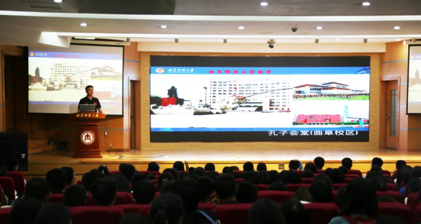 在孔子会堂开展新生学业导航讲座,此次活动邀请数学科学学院副院长王培合为主讲人。2023级辅导员徐腾飞、刘翔及2023级学院全体新生参与本次活动。