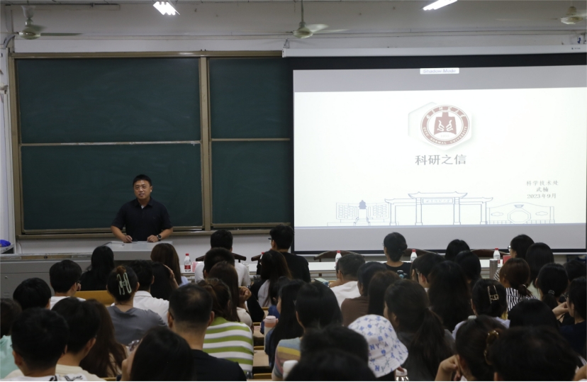 最后,武楠以“科研之信”为主题做了一场关于科研诚信的学术报告,旨在进一步学习贯彻习近平总书记关于“要营造良好学术环境,弘扬学术道德和科研伦理”的指示精神及《关于进一步加强科研诚信建设的若干意见》等文件精神,加强科研诚信建设,优化科技创新环境,开展系统性科研诚信教育,加强“三全育人”和科研育人,营造良好的科研创新氛围。武楠老师从科研诚信的定义、科研失信行为的调查处理、科研人员学术不端行为类型等多个方面向2023级研究生讲解了科研诚信相关内容,同时列举了大量科研不端案例作为警示。他指出,科研诚信是科技创新的基石,在国家发展全局中具有重要作用,中国在不断加强科研诚信建设。世界各国在科研诚信建设方面的合作日益增强,科研诚信建设在全球范围内已取得明显成效。勉励同学们要潜心学习、刻苦钻研,培养纯粹的学术精神,遵守科学道德和学术规范,脚踏实地产出高水平的科研成果。