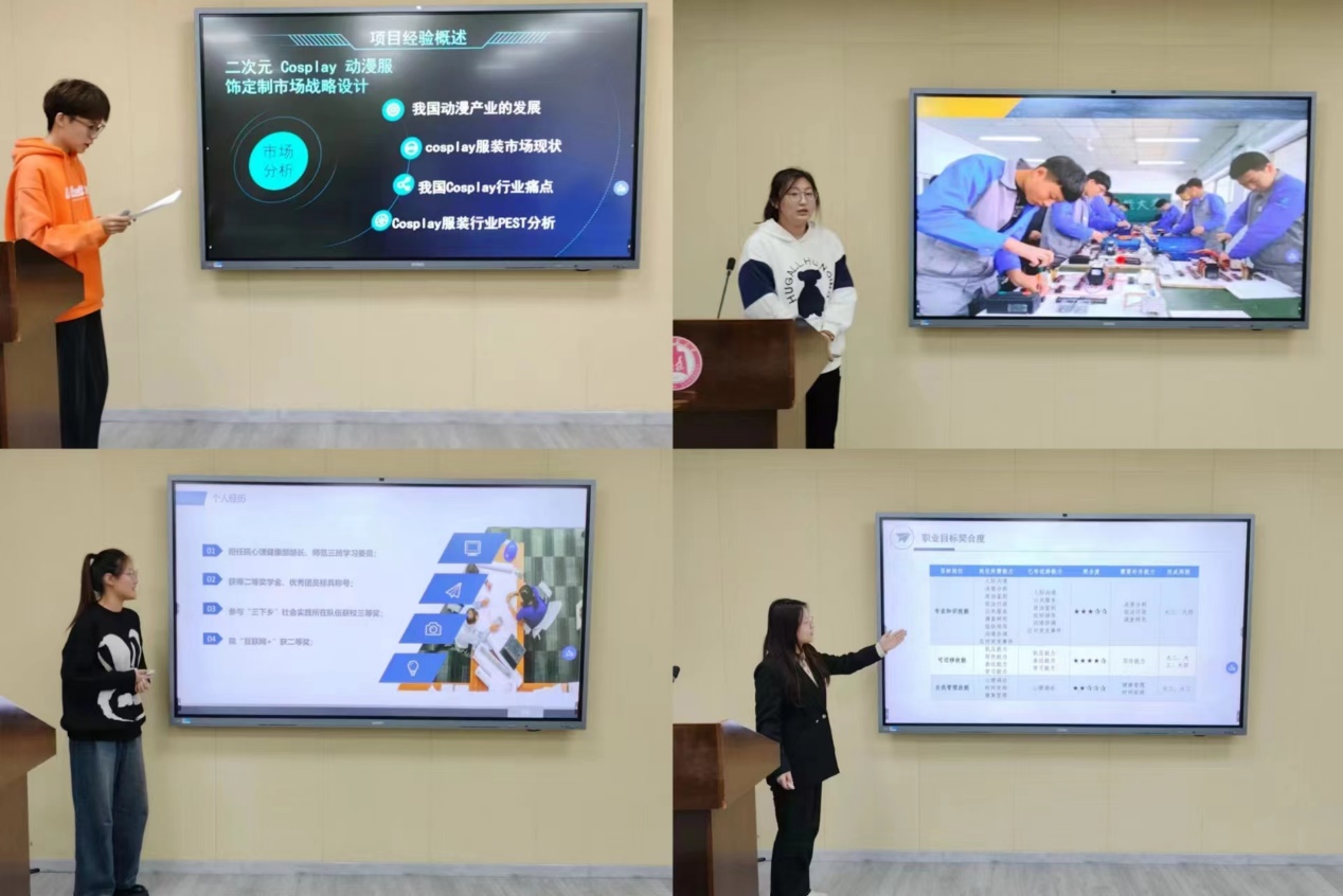 比赛中,十五位参赛选手围绕自我认知、职业认知、生涯决策、实施行动、评估反馈等五个方面规划个人的职业生涯,精彩的展示了自我职业发展预期并表达了对未来职场的向往。赛后,评委老师们对参赛选手的作品逐一点评,对每位选手的表现给予评价,提出了意见和建议,助力同学们不断优化、持续改进。比赛最终选拔出六位同学晋级参加复赛。
