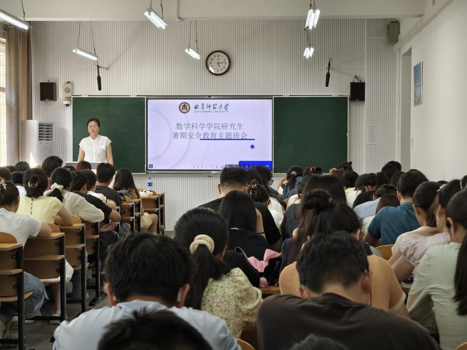 于数学楼401室开展研究生暑期安全教育主题班会,2023级和2024级研究生全体成员参加。