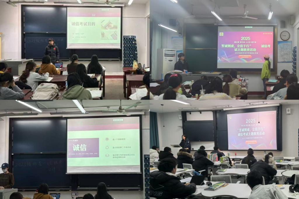 为扎实推进活动开展,学院纪检部与学院学业班导率先组织25级全体班团和纪委召开诚信考试专题会议。会议不仅强调了诚信应考的重要性,更详细阐明了考试作弊的严肃后果,为后续工作奠定了严谨规范的基调。会后,25级各班级迅速响应,紧扣会议精神制作主题PPT,并利用晚自习时间组织全班同学进行深入学习与讨论。与此同时,23、24级同学亦自主策划,积极开展形式多样的活动,切实将诚信考试理念内化于心、外化于行。