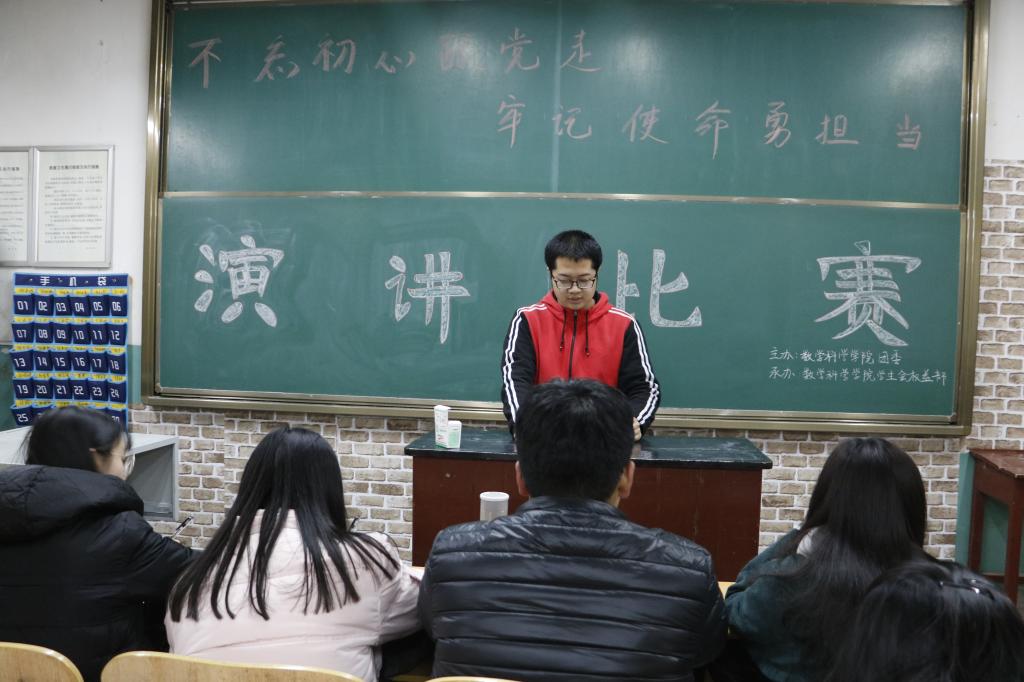 团委主办,权益与心理健康部承办的“不忘初心跟党走,牢记使命勇担当”十九大精神主题演讲比赛(初赛)在数学教学楼108教室成功举办。