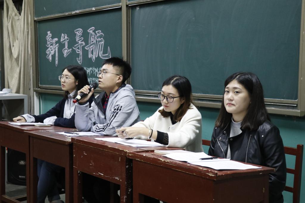 在主持人宣读开场白后,由高年级优秀学生代表向大家介绍了专业课的学习方法与技巧,为新生解决了首次面对专业课出现的疑惑,提高了新生对专业课学习的信心。接下来,新生导航视频的播出引得新生喝彩连连,大家从视频中看到了自己从刚入学到现在的变化,看到了自己刚入学的迷茫与兴奋,看到了军训时的坚韧与成熟,教官的话更是引起了他们对军训的怀念。视频播放结束,新生们踊跃提问阐述了自己仍然存在的疑惑,学生会主席团及部分部长为新生解答了他们提出的关于学习生活上提出的所有问题,给刚入大学的新生指明了前行的道路。