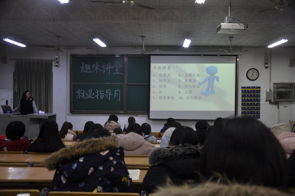 此次讲堂包含六块主要内容:当前就业形势的分析;专业背景;大学生职业生涯规划现状以及做好职业规划的意义;合理规划个人职业生涯的误区;大学生求职面试礼仪、技巧及心理调节的重要性;创业。主讲同学在讲述中结合自己的个人经历,为同学们上了一堂别开生面、贴近实际的就业指导课。