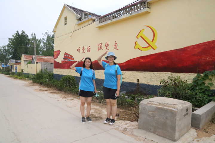 下午,在涝坡镇李家鸡山村李书记的带领下,实践团队队员对涝坡镇四周进行了走访。一路上,随处可见修剪整齐的绿化带,崭新的健身器材以及墙体外的巨型彩绘。从“我的中国梦”到“百善孝为先”,一幅幅巨大的画作成为乡间路上最亮眼的色彩。李书记介绍说,这些画作是民风建设的重要环节,正是通过这些图画,让很多老百姓认识到我们现在正在做的宏伟事业,让老百姓意识到他们自己也是民风民俗改革建设中的重要力量。高歌奋进,砥砺前行,在这场移风易俗的运动中,村民们是最直接的受益者,“破陋习,扬新风”为村民生活铺开了新的篇章,让全面小康成了村民心中的奋斗方向。