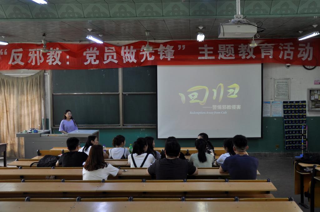 特于数学楼201教室开展了"反邪教:党员做先锋”主题教育活动。学院团委书记朱伟卫出席了本次活动并发表讲话。