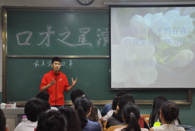 2014、2015级全体在校学生,围绕“砥砺青春,浇筑梦想”、“做最好自己,成就精彩人生”、“我的未来不是梦”、“聚焦正能量,诚信我先行”和“弘扬真善美”五个主题展开。参赛者按抽签顺序进行比赛,选手们尽情畅谈自己对所选主题的理解,用生活中的真实故事来“说”道理,展示了深厚的演讲功底,也彰显了当代大学生积极向上的精神风貌。与此同时,评委团根据选手们的发挥进行现场打分和点评,最终张亚伦同学成功问鼎,潘文杰、刘丽萍同学也以出色的表现分别拿到第二、第三的好成绩。