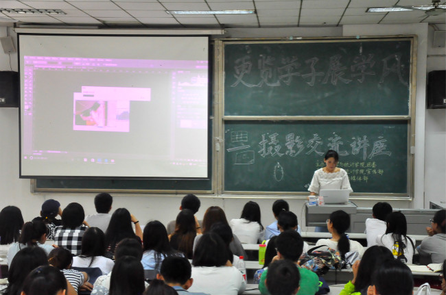 讲座中,宋小平从单反入门知识、摄影基本技巧和照片后期处理三个方面为与会同学作了详细介绍,并深入浅出地讲解了在新闻拍摄中如何把握人物的神态、保证构图完整性等技巧和注意事项。随后,各院系代表为大家分享了一些新闻拍摄心得和取景技巧。在互动环节中,同学们踊跃提问,宋小平耐心解答,一场摄影工作者之间的经验交流火热地进行着。会后,同学们纷纷表示受益匪浅,不仅了解到一些新的技术,更掌握了很多实用的技巧。