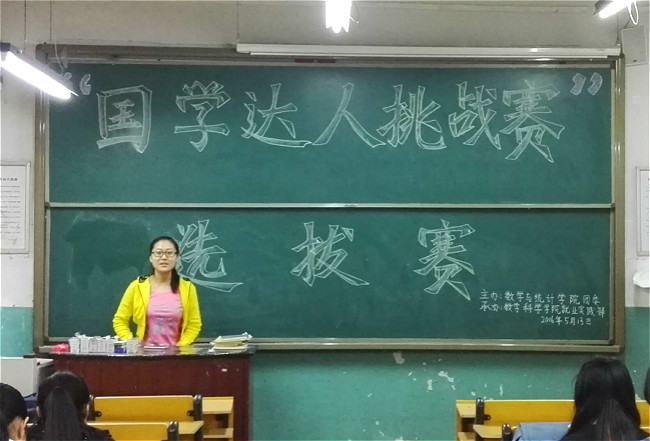 5月13日晚六点,由数学与统计学院团委主办,学生会就业实践部承办的“国学达人挑战赛”于age动漫 103教室成功举行。