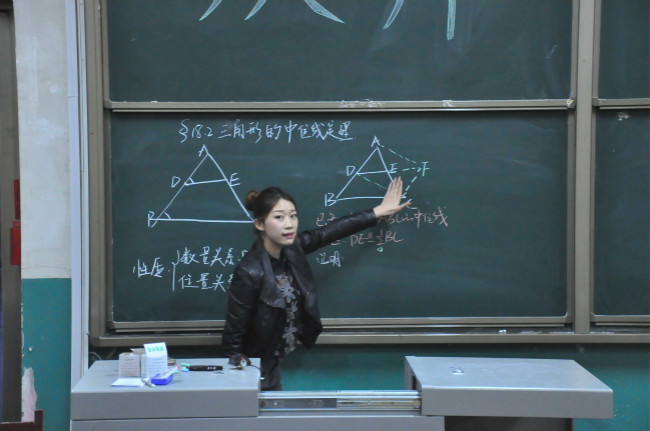 本次比赛共有44名2013级数学与应用数学师范类专业的学生参加。在主持人宣布了比赛规则和评分准则后,选手依次上场进行模拟教学演示,最后由评委现场打分决出优胜者进入复赛。在授课过程中,选手们准备充分、思路清晰,他们洪亮的声音、工整的板书以及丰富生动的授课内容赢得了评委和现场观众的一致好评。