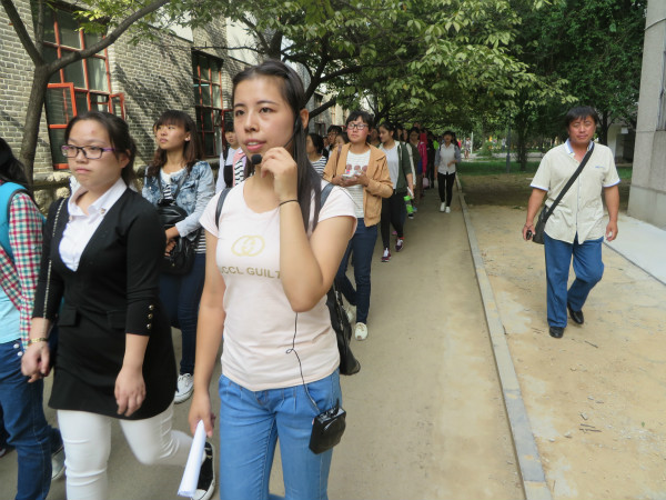 系楼前集合完毕,游园活动正式开始。本次活动从大二中挑选优秀热心的同学组成了25人的“导游组”,每班配备二到三个导游,带领新生按照预先制好的路线游览age动漫