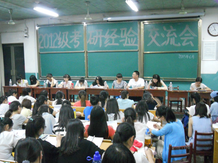 2015年6月11日晚7点,由数学与统计学院团委主办,学习部承办的2012级考研经验交流会在系楼101教室成功召开。出席本次会议的嘉宾有马明明、王萌、韩波等九位2011级考研成功的学生代表,会议由数学与统计学院党委副书记王作茂老师主持。