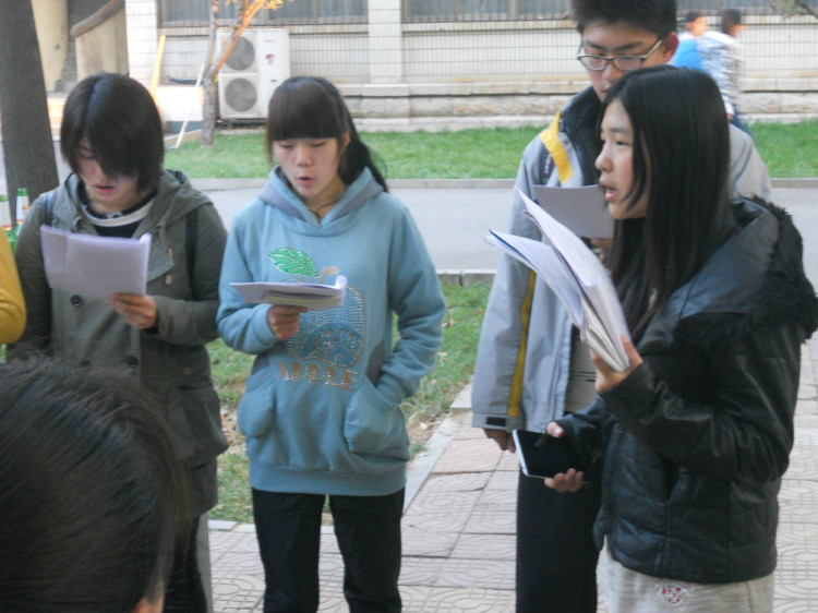 晨读活动一展开便吸引了老师和同学们的关注,如今,已有不少同学加入到本次活动中,聚集在孔子文化广场或建设银行广场上朗读英语。同学们的晨读内容多样,丰富而有朗读价值。英语四、六级考试词汇、课文和《晨读读英语美文100篇》最受欢迎。晨读期间还穿插着各类小活动,例如生活英语交流、英语小答辩、短剧表演等。周末,负责人还会对当周的晨读活动进行总结并表彰优秀同学。