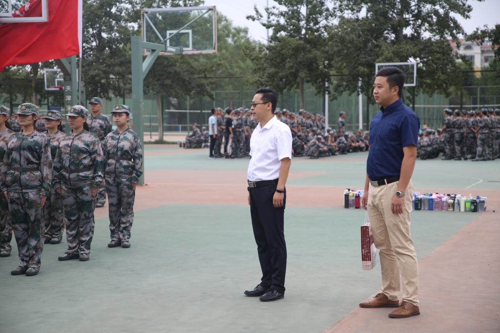党委副书记曲凤东与2019级辅导员徐腾飞多次前往训练场地看望军训中的同学们,鼓励他们坚持到底,挑战自我,珍惜军训时光,打造坚强体魄,并与教官们进行交流,了解同学们训练进度和成果。