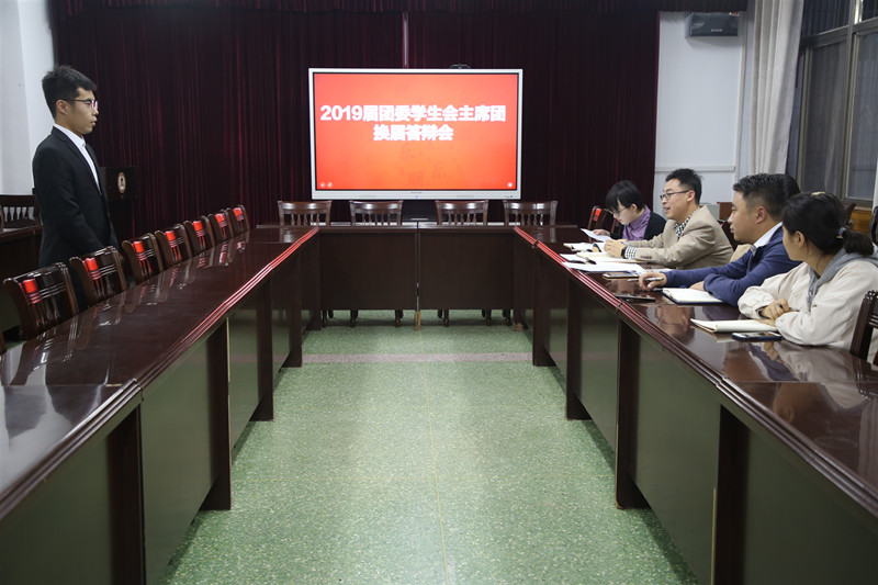 团委学生会主席团换届答辩会于数学楼304成功召开,学院党委副书记曲凤东,团委书记朱伟卫,辅导员杜晨曦、张惠、徐腾飞,优秀学生干部代表耿琳凯参加答辩会。