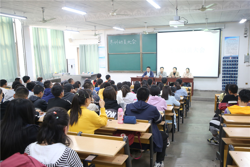 本次冬训动员会意在于鼓励参训同学坚持训练,增强学生体质,以健全学生心智为目标,以及为了校运会而做充足的准备,希望所有参训同学们可以认真训练,坚持训练,不偷懒、不放弃。